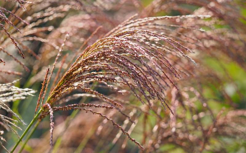 Wysokość: raczej niski, z kwiatostanem do 1,70 m Liście: jasnozielone, wąskie, jesienią żółto - pomarańczowe, pokrój łukowaty Kwiatostany: ciemno-purpurowe przewieszające się karbowane, później łapią pomarańczowe akcenty, przekwitając jaśnieją. Kwitnie bardzo obficie od końca sierpnia. Wymagania: ziemia umiarkowanie żyzna i umiarkowanie wilgotna... stanowisko słoneczne Mrozoodporność: strefa 5b