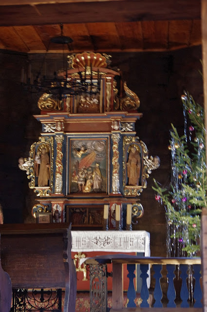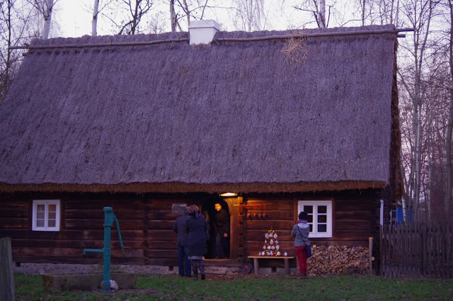 Siadamy do stołu, w chałupach autentycznie panie gotują wigilijne tradycyjne specjały, można podyskutować o wszystkim, spróbować barszczyku, uszek, pierogów itp..., tylko zdjęcia w ciemnościach wiejskich chałup nie wychodziły