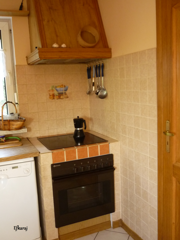 A w kuchni mąż na moja prośbę zrobił mi namiastkę pieca obudowując kuchenkę elektryczną flizami (bo u nas kafelki to flizy :))