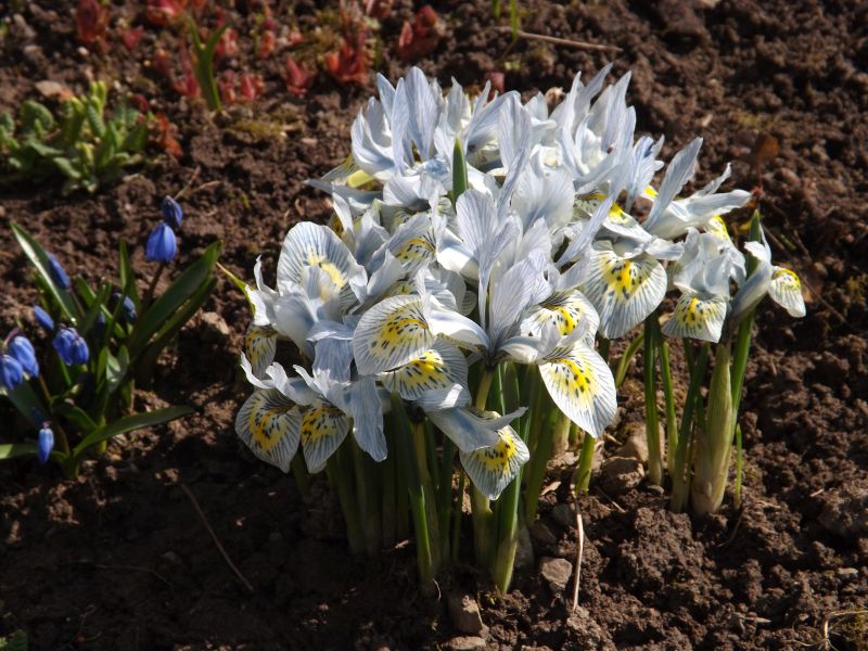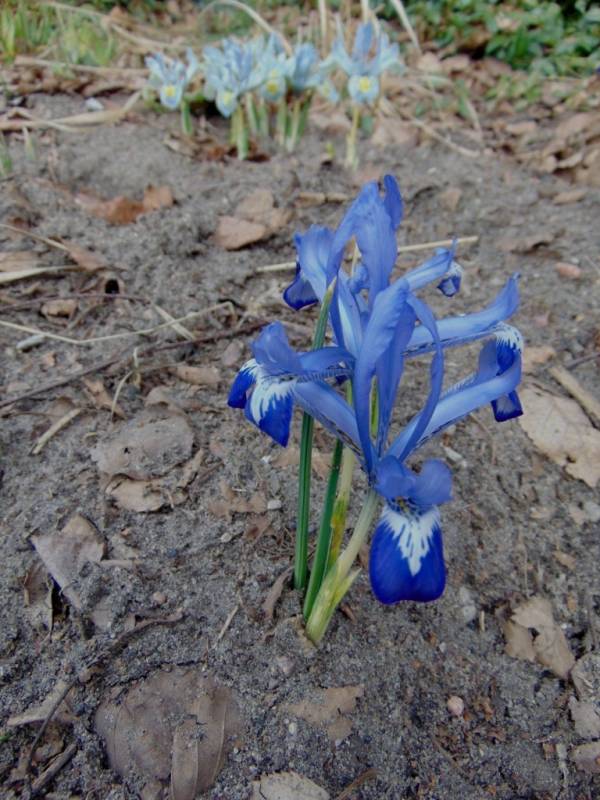 U mnie irysy żyłkowane już rozpoczęły kwitnienie a jego termin pokrywa się z ubiegłorocznym. Posadziłam je na hostowisku 3 lata temu, ale w grupach, odmianami. W tym roku niemal nie ma już grupek, poroznoszone są po całym górnym poziomie hostowiska, najczęściej pojedynczo.