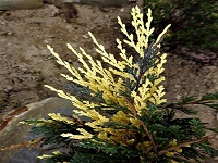 Karłowa ,wręcz miniaturowa odmiana jałowca płożącego,o płasko kulistym pokroju.