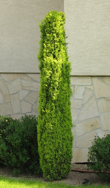 Pędy wyrastają niemal pionowo wzdłuż pnia (są bardzo liczne) nadając roślinie pokrój bardzo wąskiego i gęstego walca :kocham
