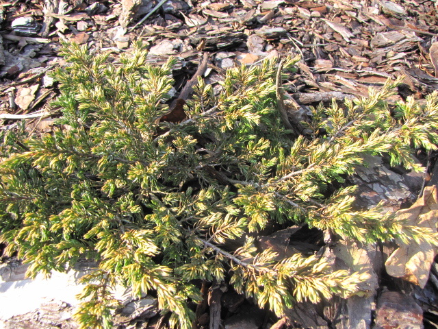 Z odmian jałowca pospolitego bardzo cenię kolumnowy 'Gold Cone'. Złocisto wybarwiony, zwarty, stanowi bardzo efektowny akcent w kompozycjach. Najlepsze stanowisko słoneczne, znosi także lekkie zacienienie- niemniej nie wybarwia się wtedy aż tak ładnie. Warto wiązać przed śniegami i luzować wiosną, jeśli chce się uniknąć deformacji (względnie strząsać śnieg, albo wiązać po fakcie, co kto lubi :P ). Dobrze znosi strzyżenie, jeśli ktoś lubi geometryczne kształty.