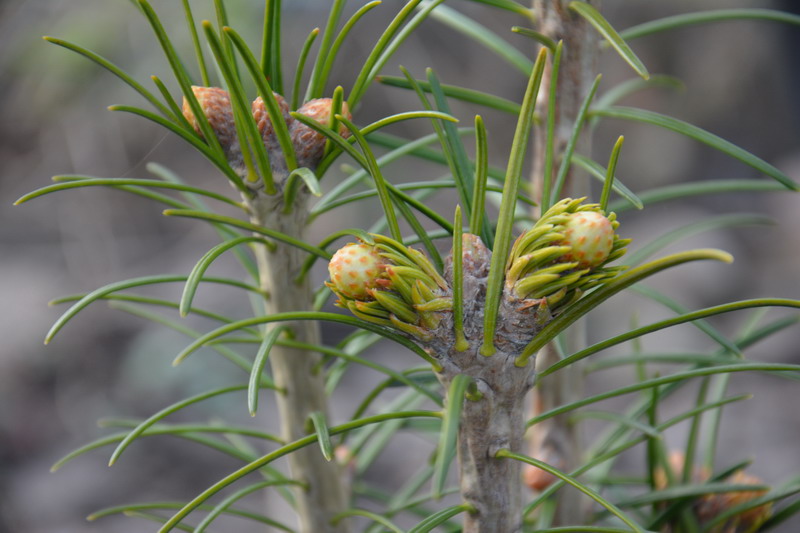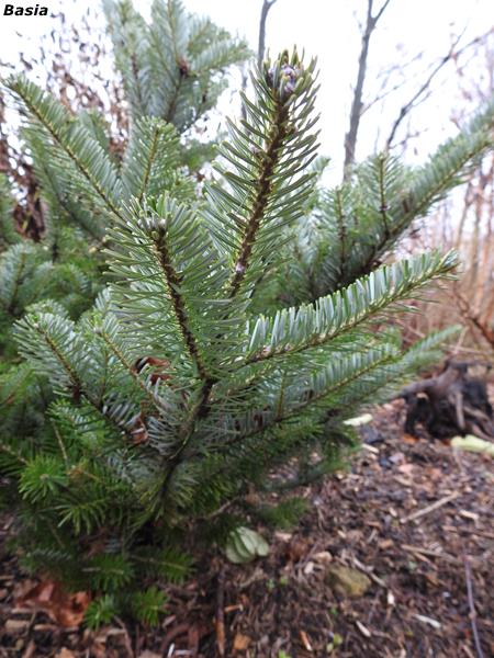 Szyszki - Stojące, walcowate, o długości 8-10 cm. Występują niezbyt licznie, ale nie tylko na wierzchołku drzewa, ale również na niższych gałęziach. Przed dojrzeniem są fioletowe, potem fioletowo-brązowe.