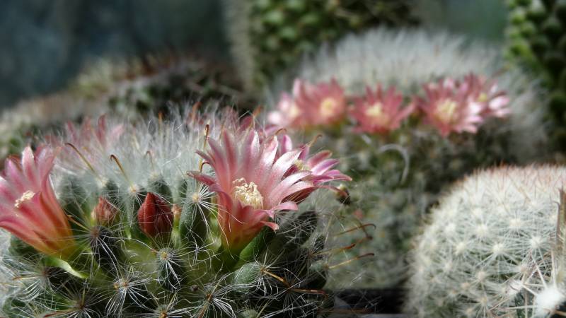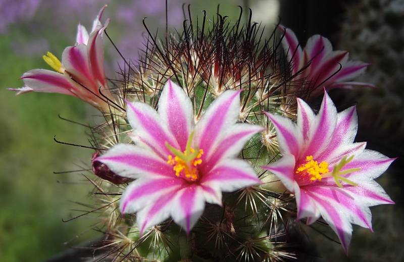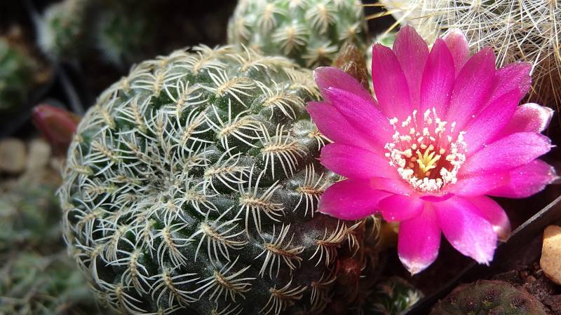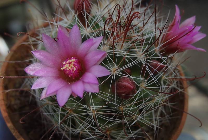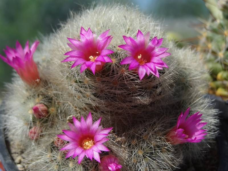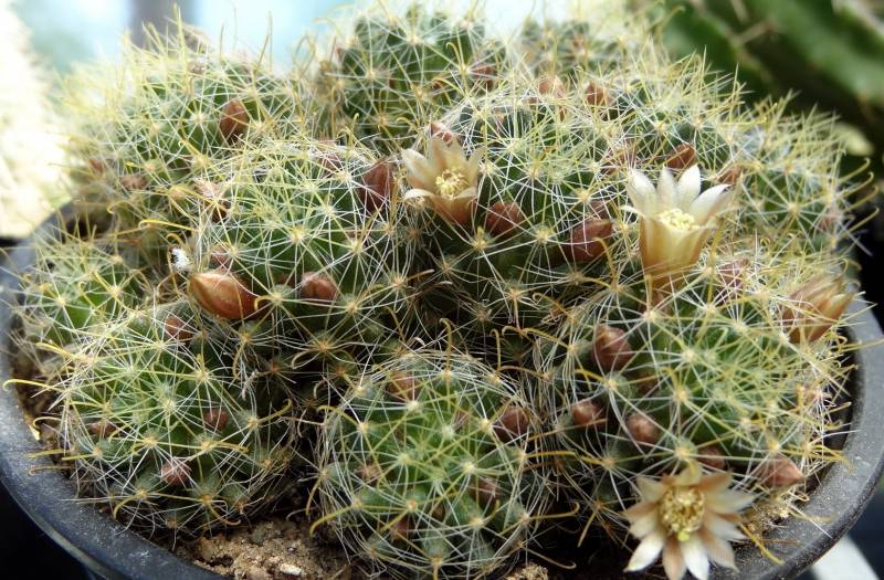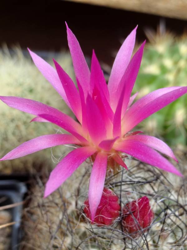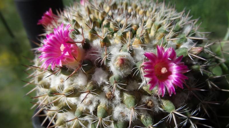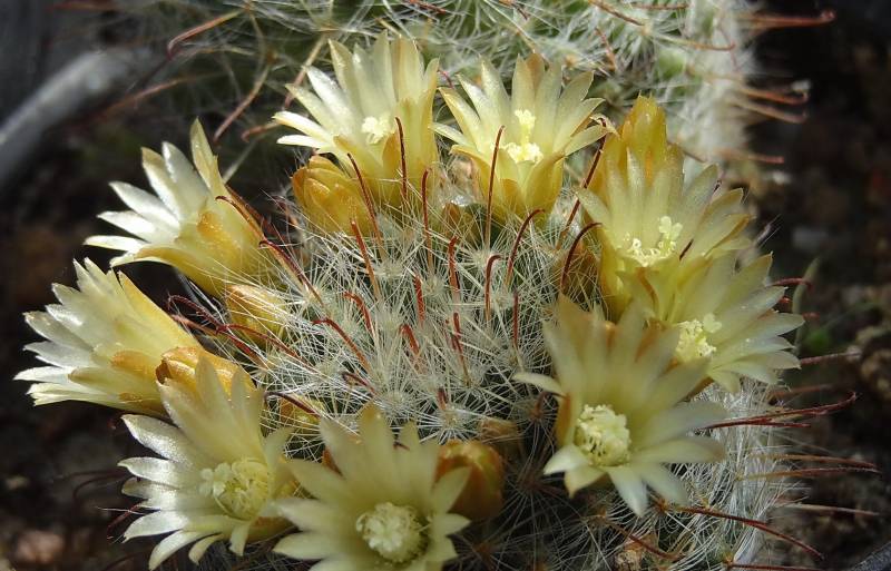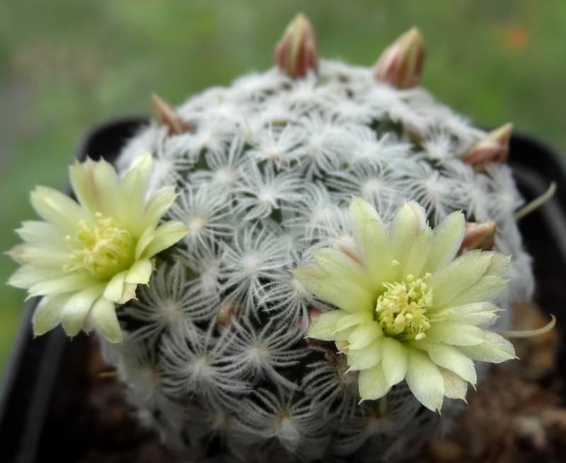 Mammillaria karwinskiana ssp. nejapensis z kwiatami i owocem