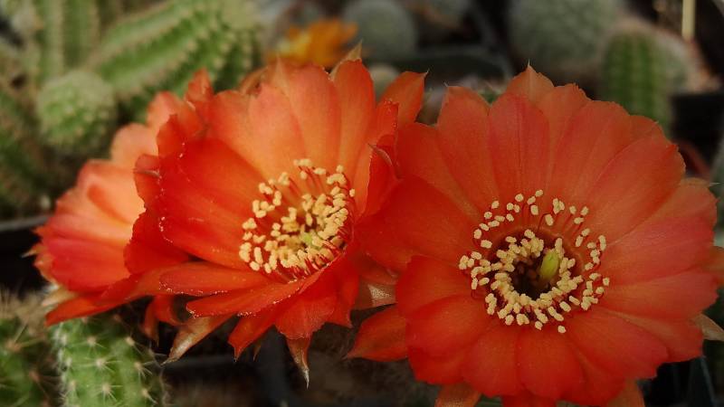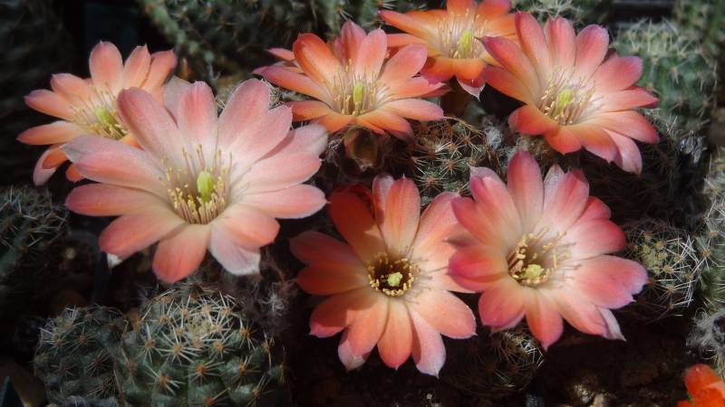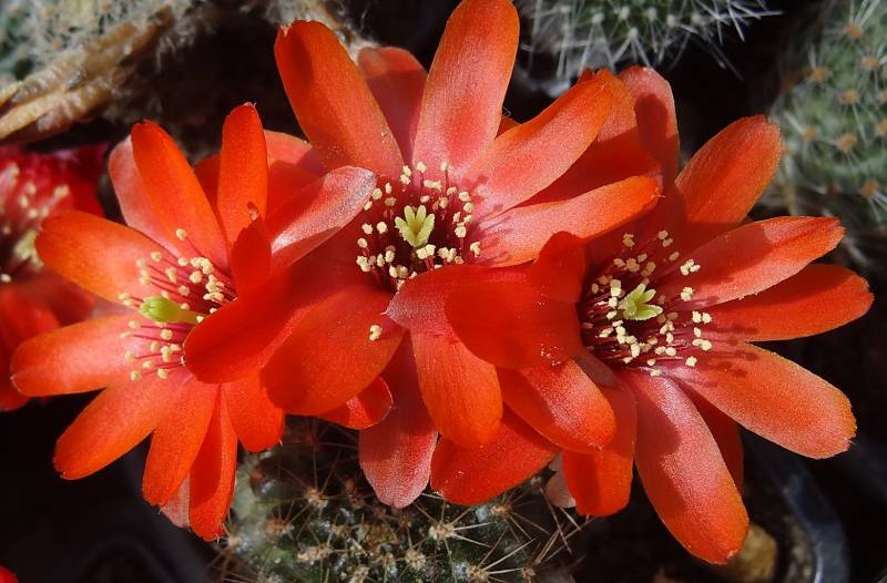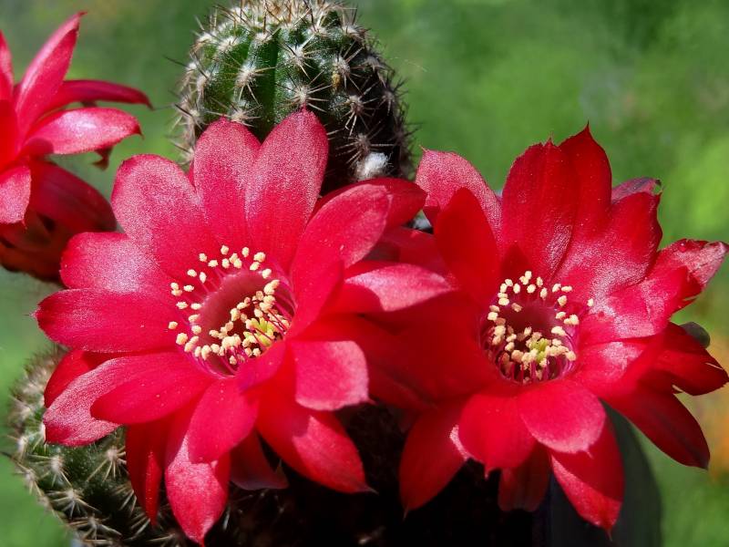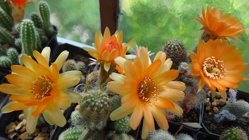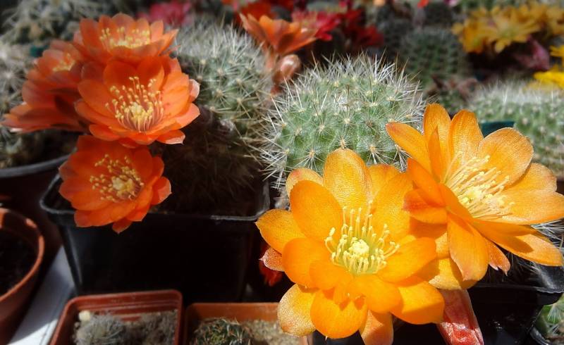 Szaleją chamaecereusy. Kwiaty dość krótko mają rozwinięte (ok. 3 dni), ale przy takiej ilości pąków to kwitnienie rozciąga się na dość długi czas.