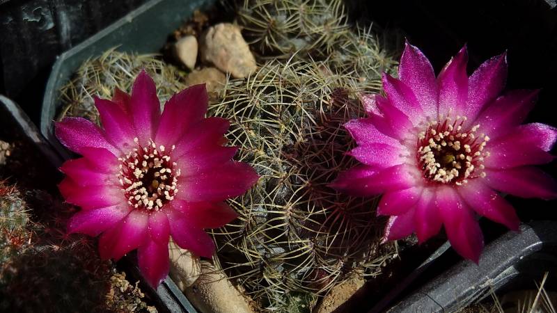 W zeszłym roku wysiałam kilka, ale już więcej tego nie zrobię - klapa w większości przypadków. Miałam nasiona 7 różnych pięknych odmianowych echinopsisów. Pięknie powschodziły i potem padły wszystkie. Jeszcze jeden dycha. Mammillaria wielkokwiatowa guelzoviana też padła.