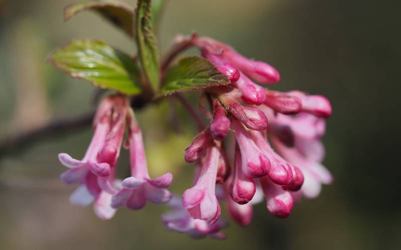 Kalina bodnantska 'Charles Lamont' rozwinęła pierwsze kwiatuszki flower