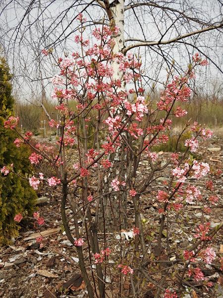 Kalina bodnantska Dawn ... u mnie ma trochę za suche stanowisko, ale i tak kwitnie co roku.