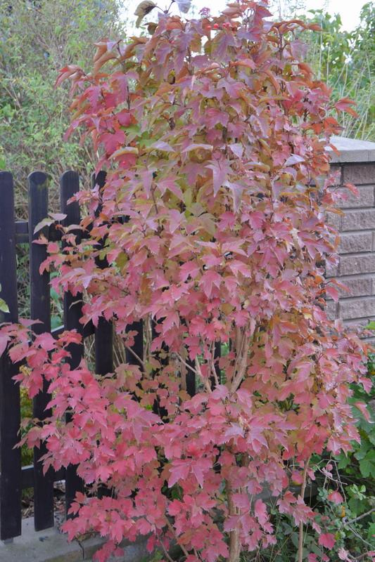 Viburnum sargentii 'Onondaga' sześć lat po przesadzeniu, widać z miejscówki zadowolona bo osiągnęła już niezły rozmiar :woohoo: