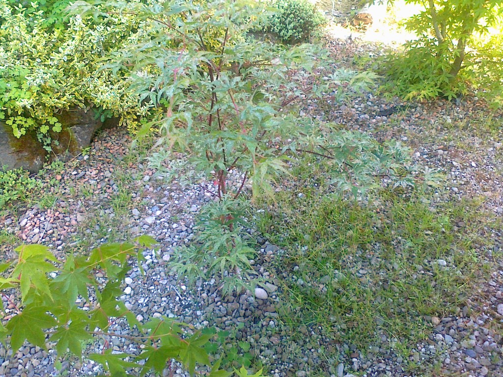 Atropurpureum, z perspektywy (i z bliska)... Ten z prawej strony jest już ogromny, ma jakieś 3m wysokości, bardzo rozłożysty...
