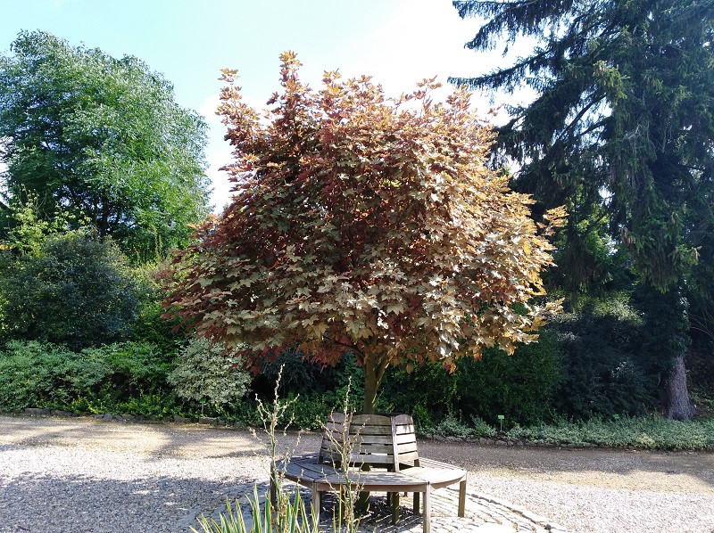 Patrząc na ten klon pomyślałam, że nie jest łatwy do zestawień kolorystycznych. Może dlatego w Arboretum rósł jako soliter ;).