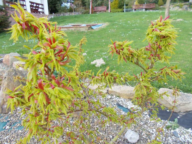 Acer palmatum 'Mikawa-Yatsubusa' w ogrodzie Pawła.