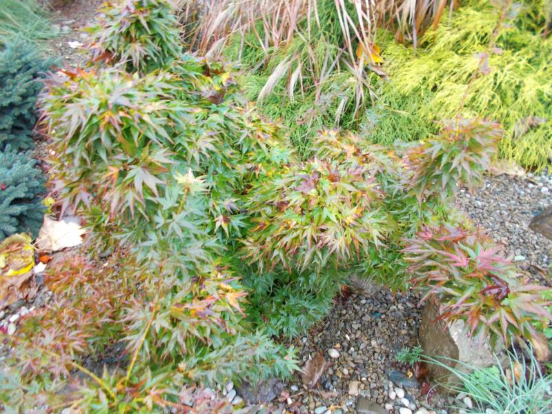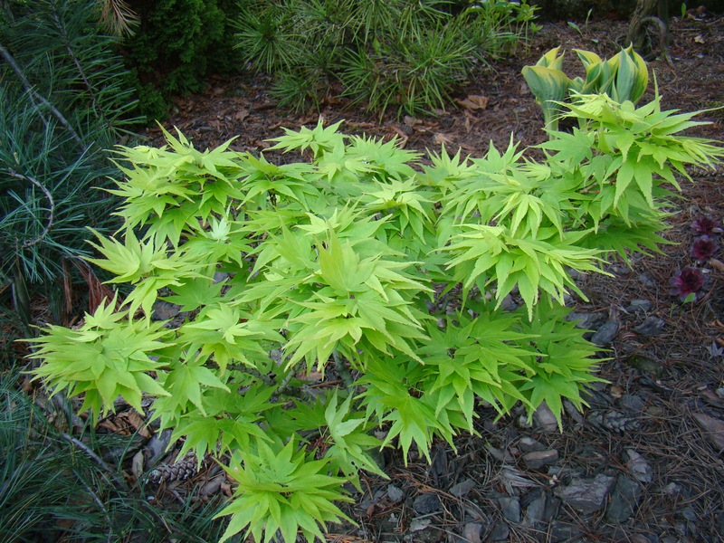 Klon palmowy (Acer palmatum) 'Mikawa-Yatsubusa' w ogrodzie Ewy.