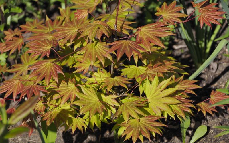 Mimo szybko rosnącego cienia wokół, Klon Shirasawy 'Autumn Moon' nabrał jesienią pięknych rumieńców