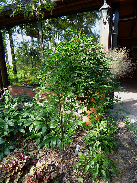 Mój 'Ryusen' nadal siedzi zadołowany w donicy i powoli przybiera barwy jesienne.