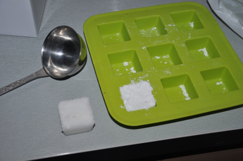 Nakładam łyżeczką do silikonowych foremek na kostki lodu. Odstawiam w ustronne miejsce do całkowitego wyschnięcia. Czasem może to wynieść nawet kilka- kilkanaście dni.