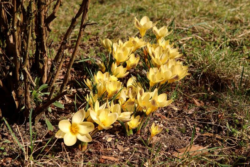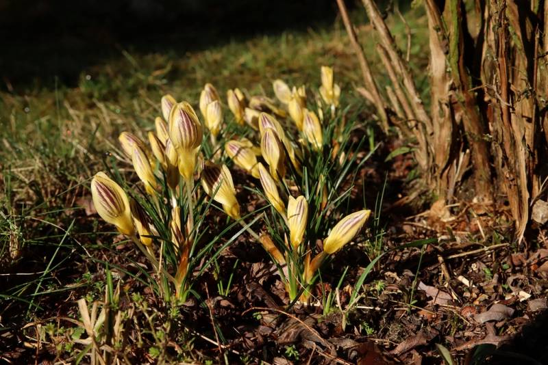 Serdecznie dziękuję za stworzenie wątku tematycznego Tymczasem Krokusy 'Mariette' rozkręciły się u mnie na dobre i kwitną bardzo obficie. W pierwszym dniu wiosny 2026 zrobiłem im nieco większą fotosesję: