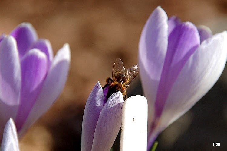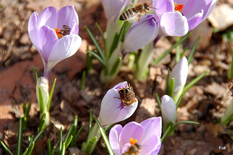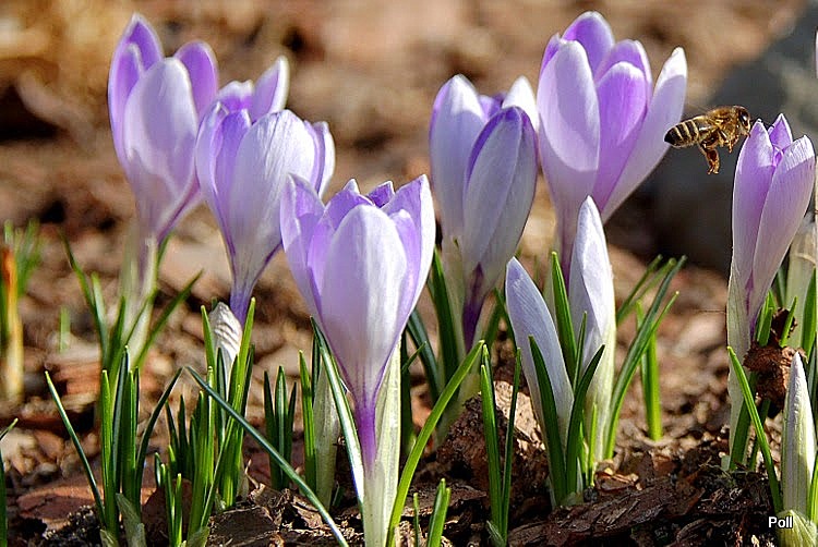 Krokus Blue Pearl rok temu rozwinął kwiaty akurat 8 marca, czyli w Święto Kobiet :jupi To był piękny słoneczny dzień i wokół krokusów aż roiło się od owadów. Przyszło mi leżeć na brzuchu na ziemi z pół godziny 2smiech I dobrze, bo potem nadeszła gorsza aura i krokusy juz sie tak nie prezentowały.