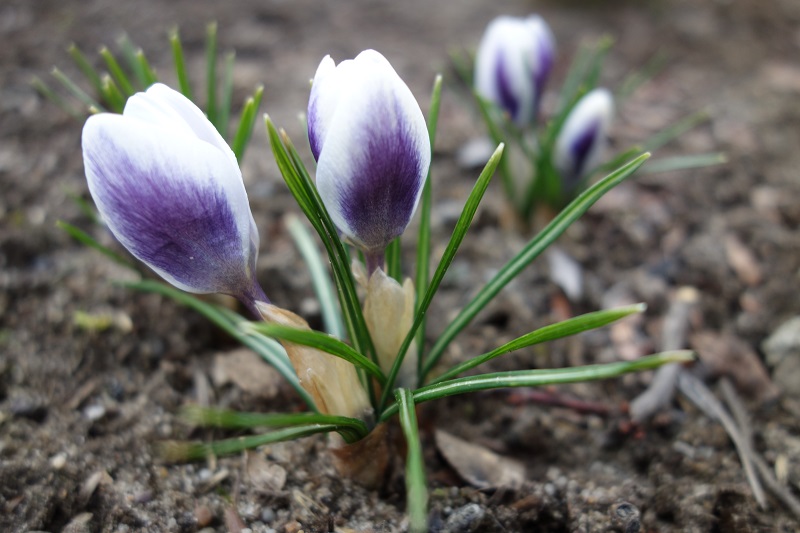 Krokusy pokazały zielone grzywki i gdyby nadal zima była tak ciepła, jak do tej pory, pewnie niedługo by zakwitły