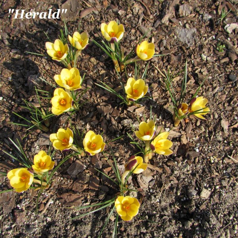Krokusów 'Herald' mam w sumie tylko dwie małe kępki, ale obie muszę przesadzić na jakieś bardziej słoneczne stanowisko. W tym roku wyjątkowo długo kwitną i nawet dość obficie.