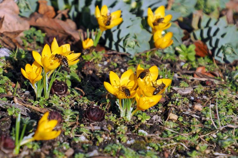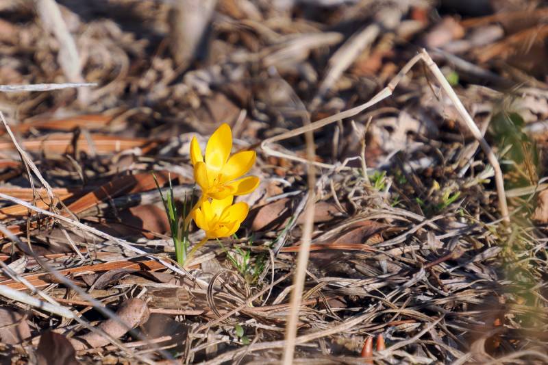 Krokus złocisty Uschak Orange rozpoczyna u mnie krokusowy sezon 2024. Kiedy wróciłem z pracy był już ładnie otwarty do słońca, ale zanim wyszedłem z aparatem kwiatuszki już się zamknęły.