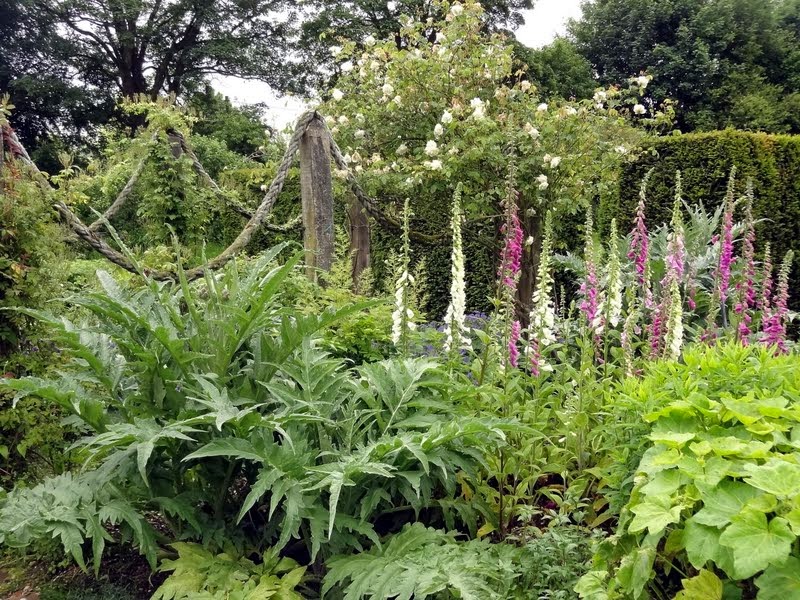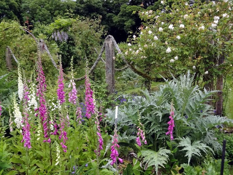Naparstnica w towarzystwie karczochów w The Hause Manor, Upton Grey, Hampshire - domu Gertrudy Jekyll