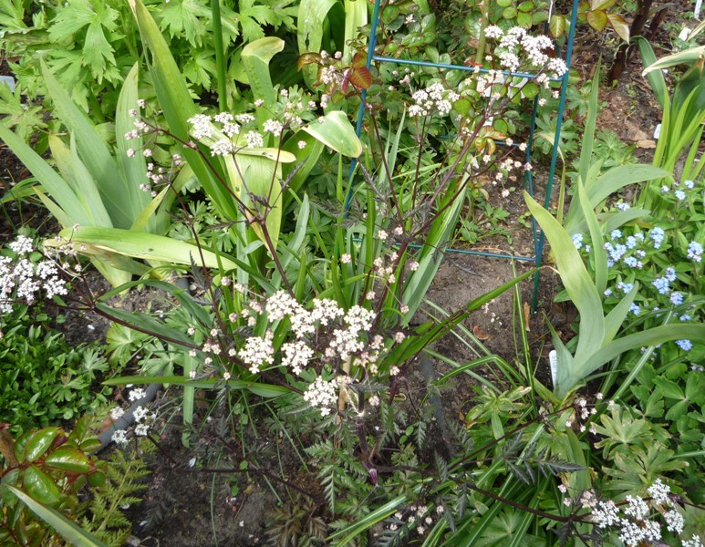 Odmiana ogrodowa 'Ravenswing' charakteryzuje się mocno pierzastymi liśćmi w kolorze burgundowym.