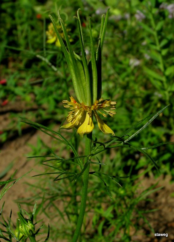 Słupki przekwitających kwiatów wyginają się na kształt korony.