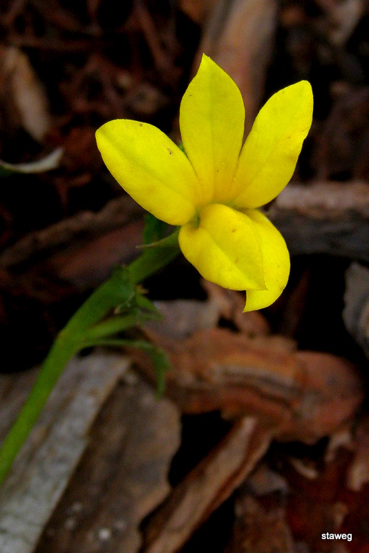 W czerwcu pojawiają się jasnożółte kwiaty, zbudowane jak u większości lobelii, wznoszące się nieco ponad liście.