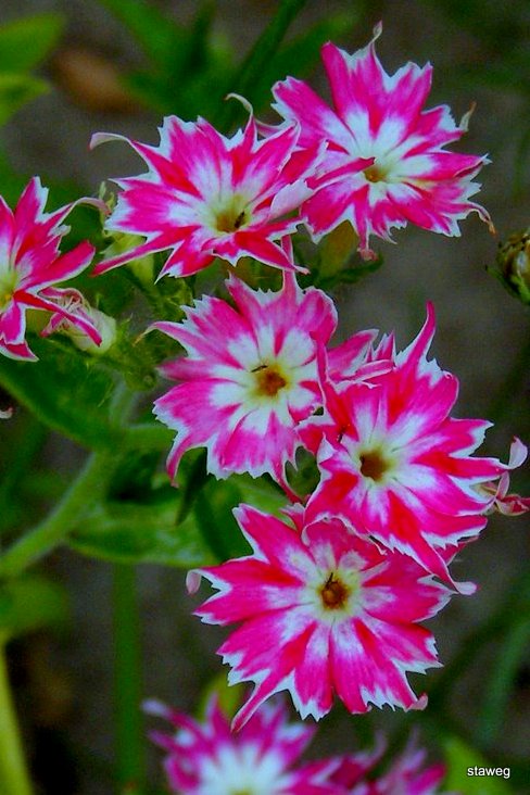 Kwiaty intensywnie wybarwione, różnokolorowe, budowy gwiazdkowej z kontrastowymi oczkami w środku. Kwitnie długo, od lipca do jesieni. Świetnie się nadaje na niskie rabatki i obwódki, bowiem wyrasta na 20 - 25 cm.