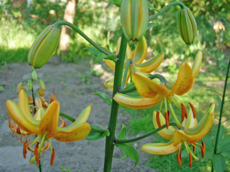 Lilia Hansona pochodzi z Korei i Japonii, gdzie jest nazywana "Gakeshima-Yuri" - japońską lilią turbankową. Może dorastać do 120 cm, ale dokąd się nie zadomowi na swoim miejscu może rosnąć do 60 cm. Mieszańce martagon hodowane w naszych ogrodach są najczęściej krzyżówkami rodzimej dla Europy lilii złotogłów oraz pochodzącej z Korei lilii Hansona.
