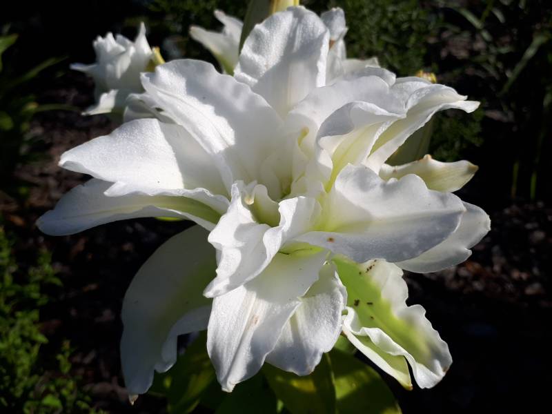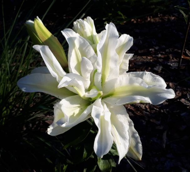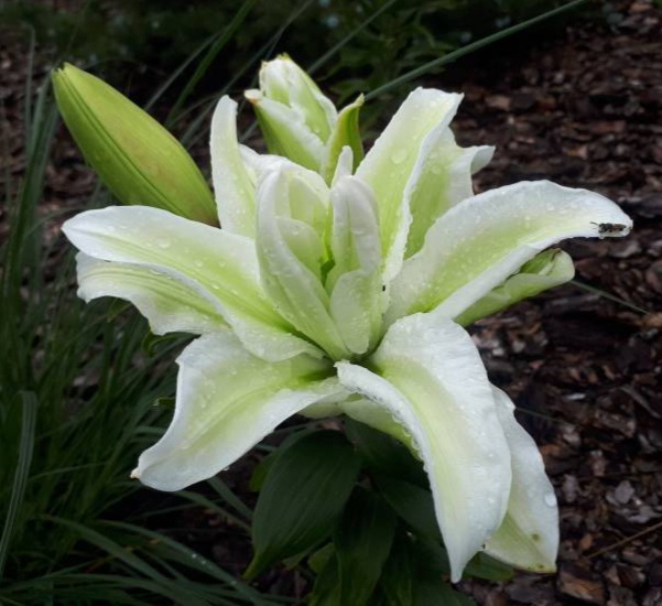 Kwiat: białe, pełne z zielonymi zabarwieniami w środku, skierowane ku górze
