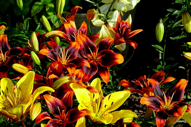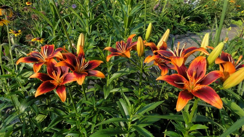 Jak już zakwita, to bardzo licznie. Wiele odmian lilii azjatyckich rozwija kwiaty po kolei. Ta należy do nielicznej grupy, której przedstawiciele otwieraja kwiaty niemal równocześnie.