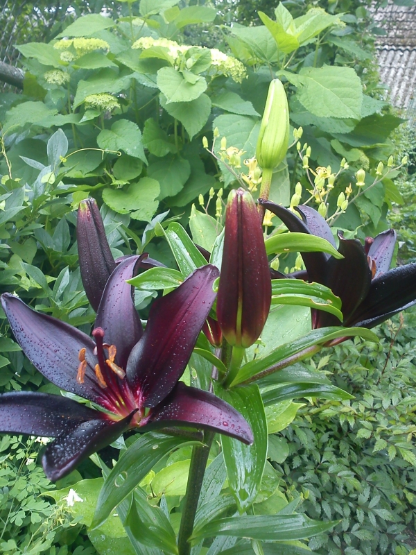 Wysokość: 100-130 cm Kwiat: bardzo ciemny, purpura wpadająca w czerń, szczególnie na półcienistym wilgotnym stanowisku Kwitnienie: czerwiec/sierpień Wymagania: niewybredna co do podłoża i klimatu, odporna na choroby i niskie zimowe temperatury, jakkolwiek zawsze warto narzucić odrobinę stroiszu