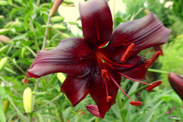 Wysokość: 90-100 cm Kwiat: ciemnopurpurowy, sprawiający wrażenie czarnego. Kwitnienie: VI, VII Wymagania: jak u innych mieszańców azjatyckich - przeciętna ziemia ogrodowa, żyzna i przepuszczalna. Posadzona w półcieniu przepięknie się wybarwia ale nachyla ku słońcu. Mrozoodporność: wystarczająca