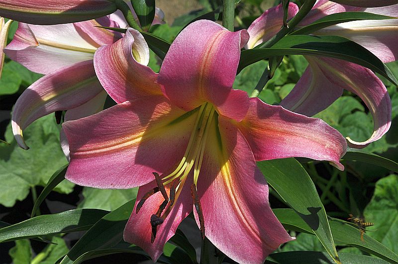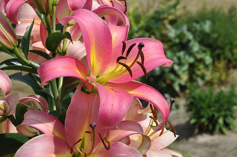 Wysokość: 130-140 cm Kwiat: różowy przechodzący w brzoskwiniowy wewnątrz kwiatu, żółta nasada płatków, skierowane na wprost Kwitnienie: VII-VIII Wymagania: przeciętna ziemia ogrodowa z tendencją do lekko kwaśnej, przepuszczalna Zapach: mocno pachnąca Mrozoodporność: bardzo dobra