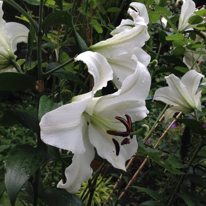 Wysokość: w pierwszym sezonie do ok. 120 cm, starsze egzemplarze do 2 m Kwiat: biały, skierowany na boki, z ciemno brązowymi pylnikami i zielonym gardłem Kwitnienie: VII-VIII Wymagania: przeciętna ziemia z tendencją do lekko kwaśnej, przepuszczalna, stanowisko: pełne słońce Zapach: silny Mrozoodporność: bardzo dobra.