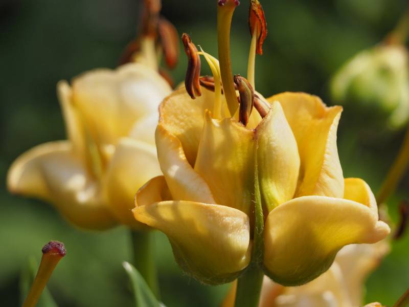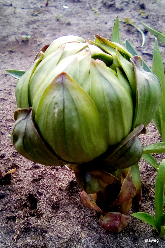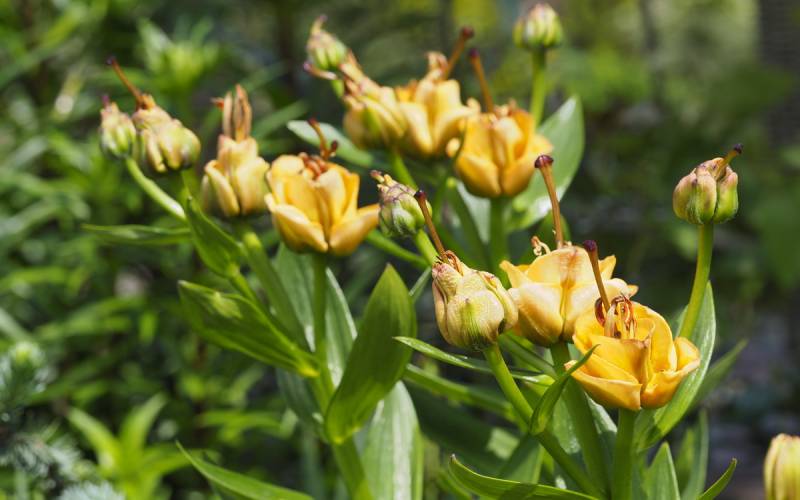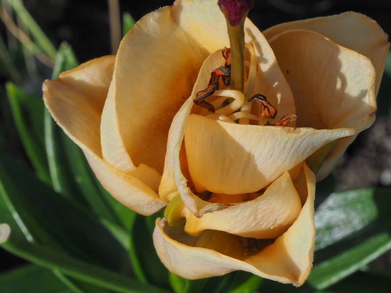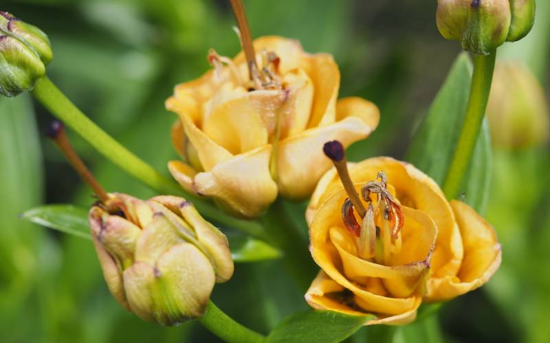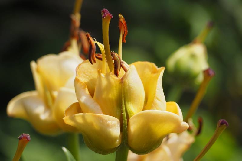 Ta, zupełnie nietypowa lilia, nietypowo się również rozwija. Najpierw z ziemi wychodzi coś na kształt kulki, potem przypomina to maczugę z liści, a dopiero przed kwitnieniem liście się rozwijają, pęd rośnie i pokazują się pąki kwiatowe.