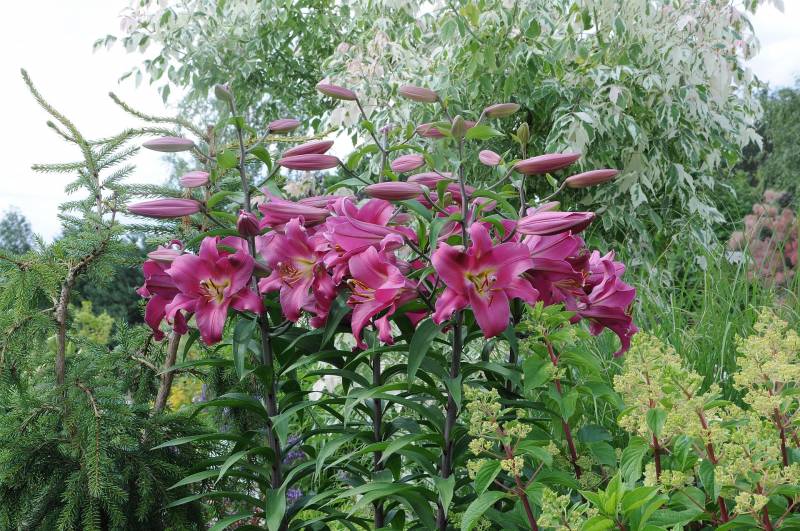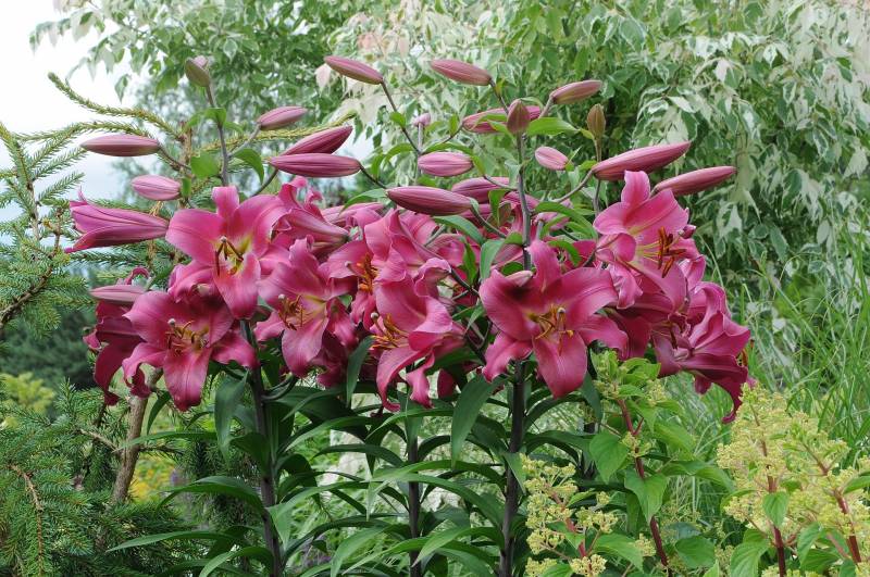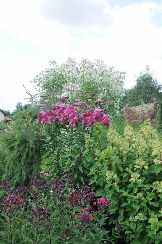 Jedna z najwyższych moich lilii OT, przekracza dwukrotnie deklarowaną wysokość, osiąga co roku wysokość ok. 2m. Do tego ładnie się rozrasta i nie ściaga za dużo robali