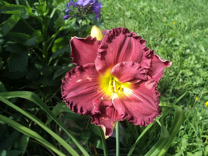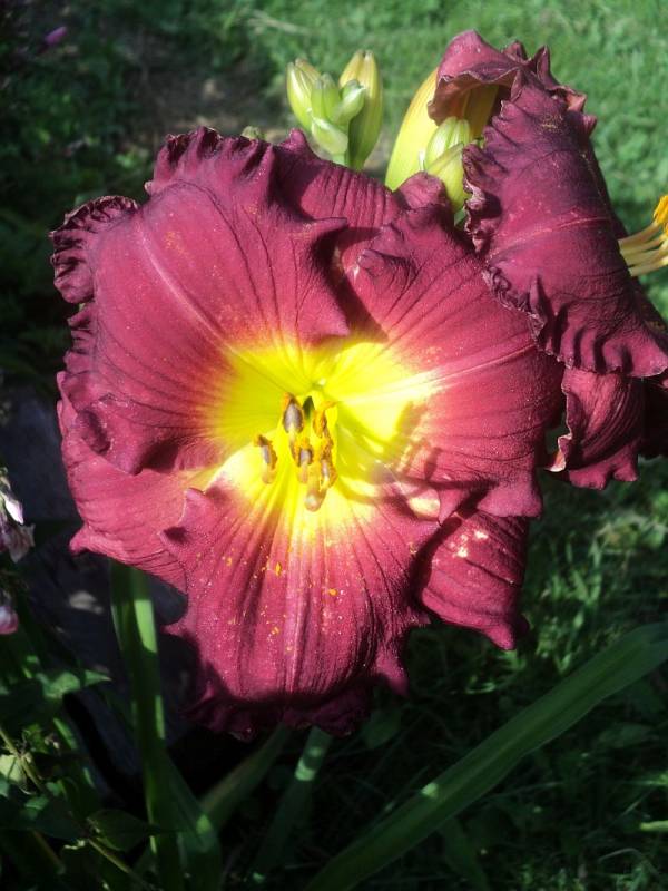 Hodowca: Shooter , rok rejestracji 2000 Wysokość: ok 60 cm Kwiaty: w kolorze burgunda z żółto- zielonym gardłem , falbanka na brzegach płatków , średnica ok 15-16 cm.