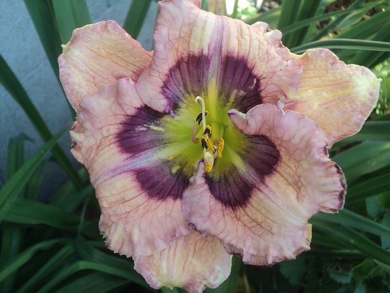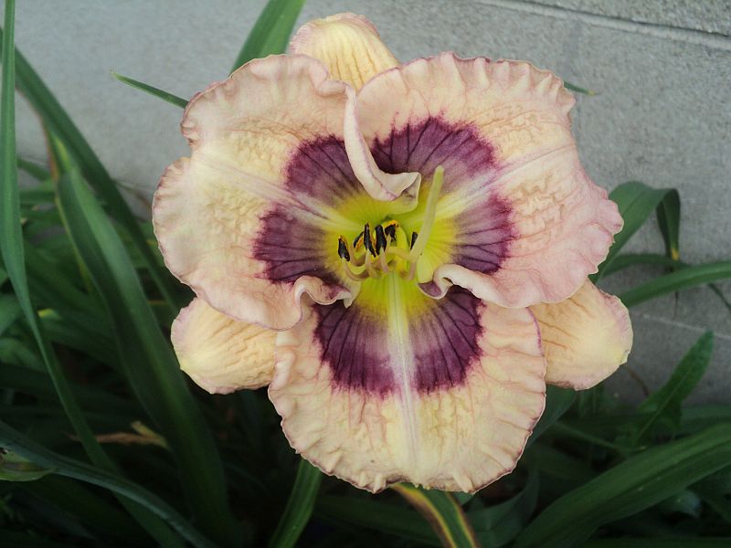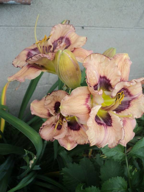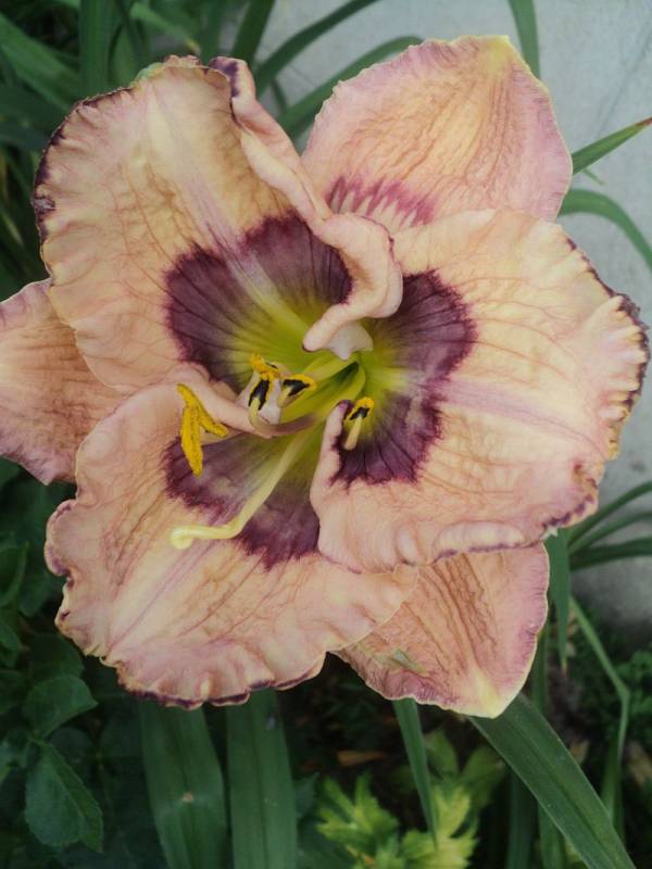 Kwiaty: kremowo-brzoskwiniowe z niebiesko-fioletowym okiem i zielono - żółtym gardłem . Wielkość kwiatu 15 - 16 cm. Zakwita koniec czerwca , lipiec.