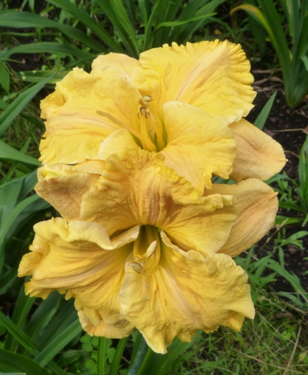 Hodowca Stamile, rok rejestracji w AHS - 1999 wysokość 65cm, kwiat 18 cm, pachnący, złoto-żółty z "płaskorzeźbą" (sculpted relief) na płatkach, może powtarzać kwitnienie
