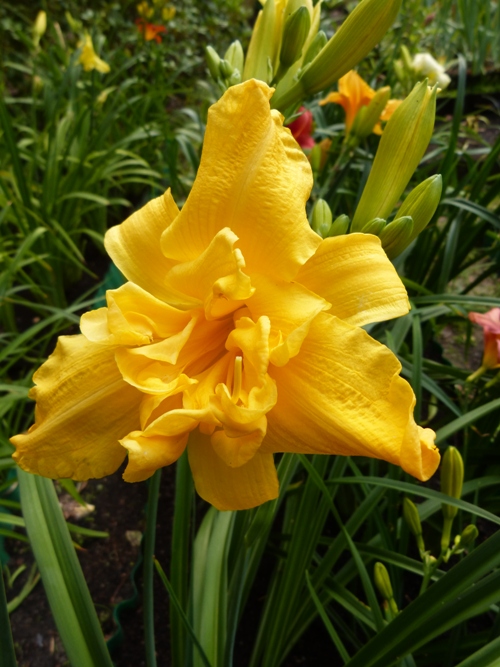 kwiat 10 cm, pełny, złoty, ładnie ukształtowany.