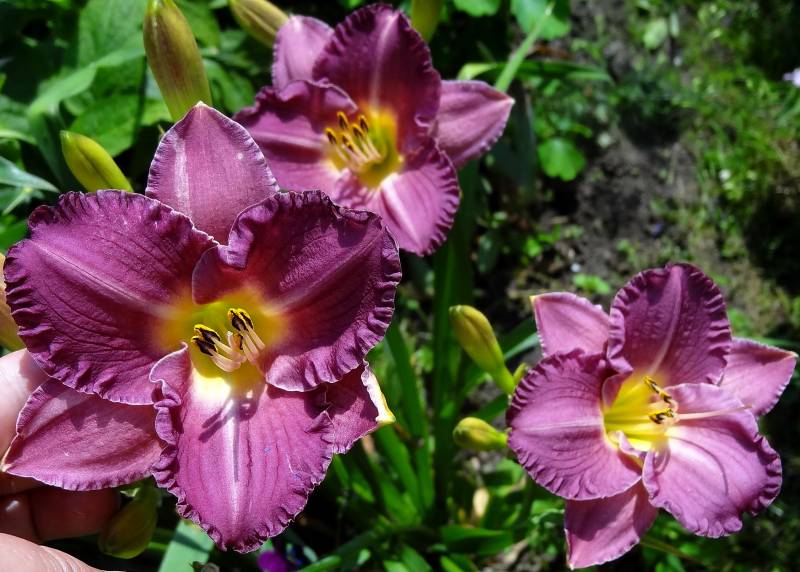 kwiat 15 cm, niebiesko-fioletowy z żółtą gardzielą. Po mojemu to jest różowo-fioletowy a niebiesko-fioletowy jest tylko "wieczorową porą"