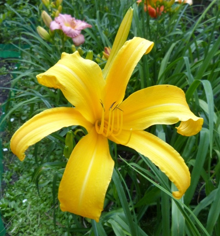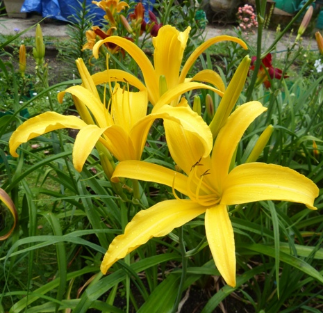 Kolor kwiatów ciepły żółty, na petalach ledwo widoczne jaśniejsze żebro. Prawdziwe słoneczko górujące nad innymi kwiatami...