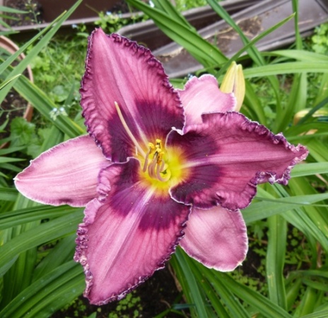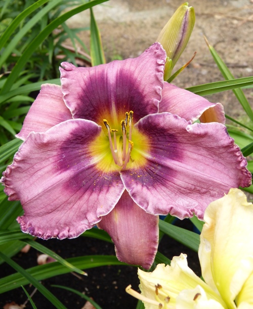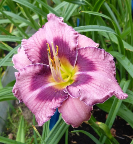 kwiat 16 cm, lawendowy z ciemno fioletowym okiem i zieloną gardzielą