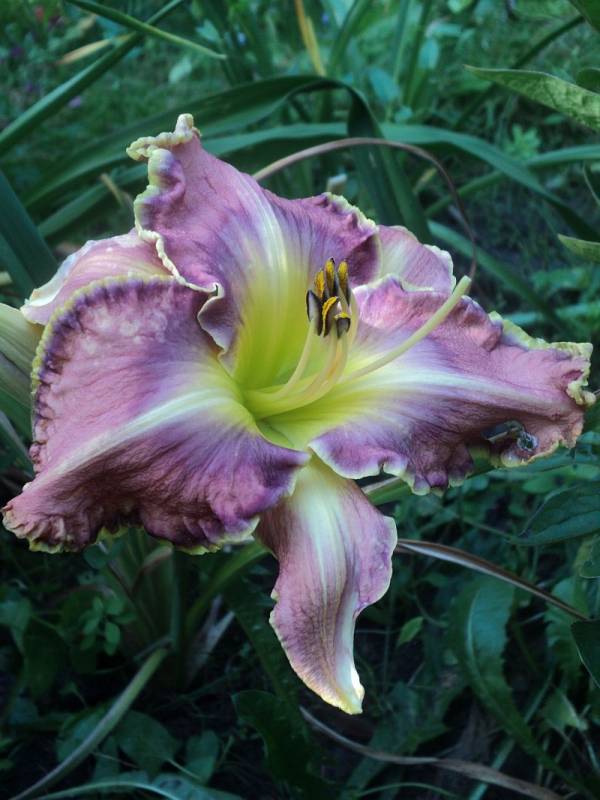 Hodowca: Lambertson, 2006 Wysokość: ok 60cm Kwiaty: kwiaty w kolorze fioletowo-jagodowym ,z fioletowo - niebieskim okiem , gardło żółto-zielone .Krawędź płatków wykończona falbaną w kolorze oka i zieleni.. Wielkość kwiatu ok 15 cm. Stanowisko: słoneczne do półcienistego. Mrozoodporność: zimuje bez okrycia . Uwagi;