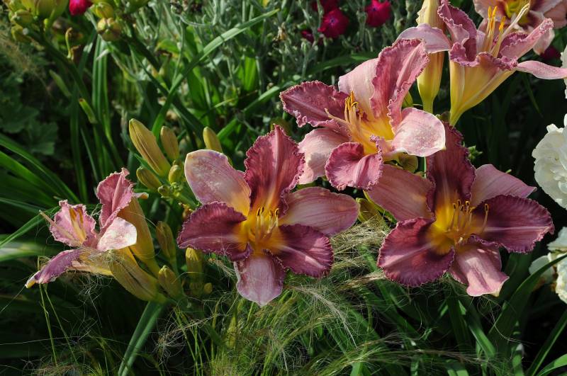 Hodowca: Brooker, 2002 Wysokość: 70-80 cm Kwiat: spory, o średnicy 15-17 cm, fioletowo-różowy z purpurowym okiem i żółto-zieloną gardzielą. Mocno zaznaczona falbanka wykończona srebrnym brzegiem. Termin kwitnienia: czerwiec, lipiec, może powtarzać