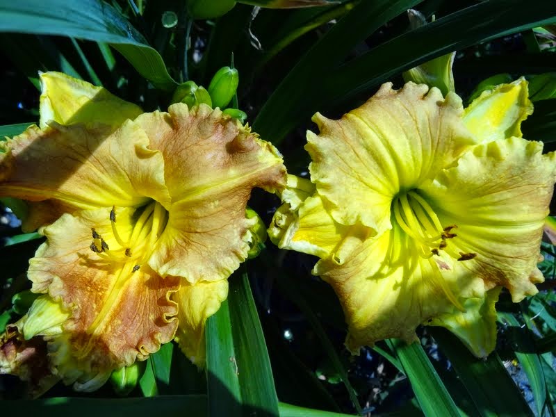 kwiat 14 cm, żółty z brązowym nałożeniem (?) (bronze overlay) i zieloną gardzielą.